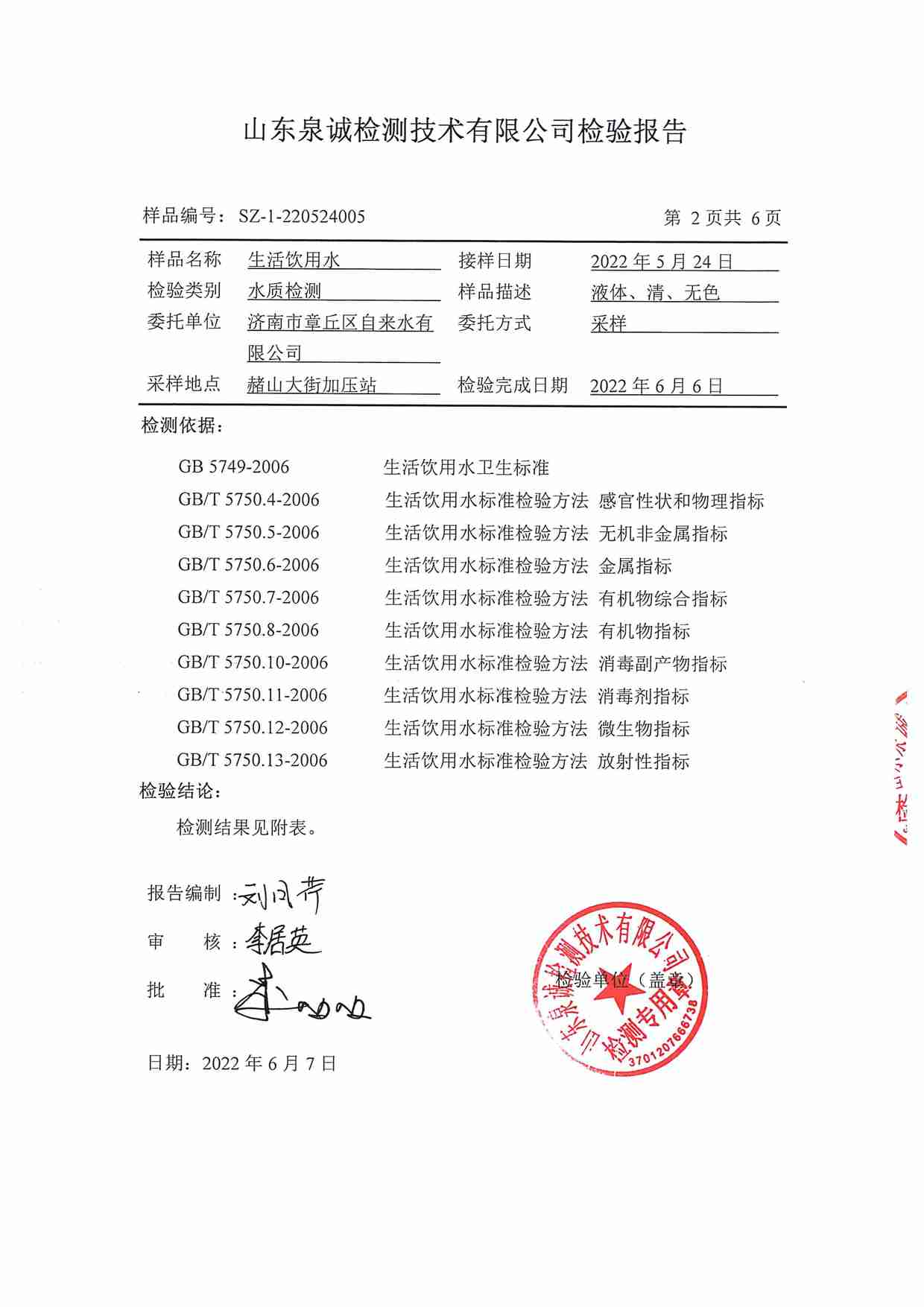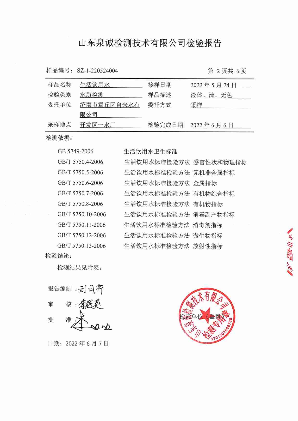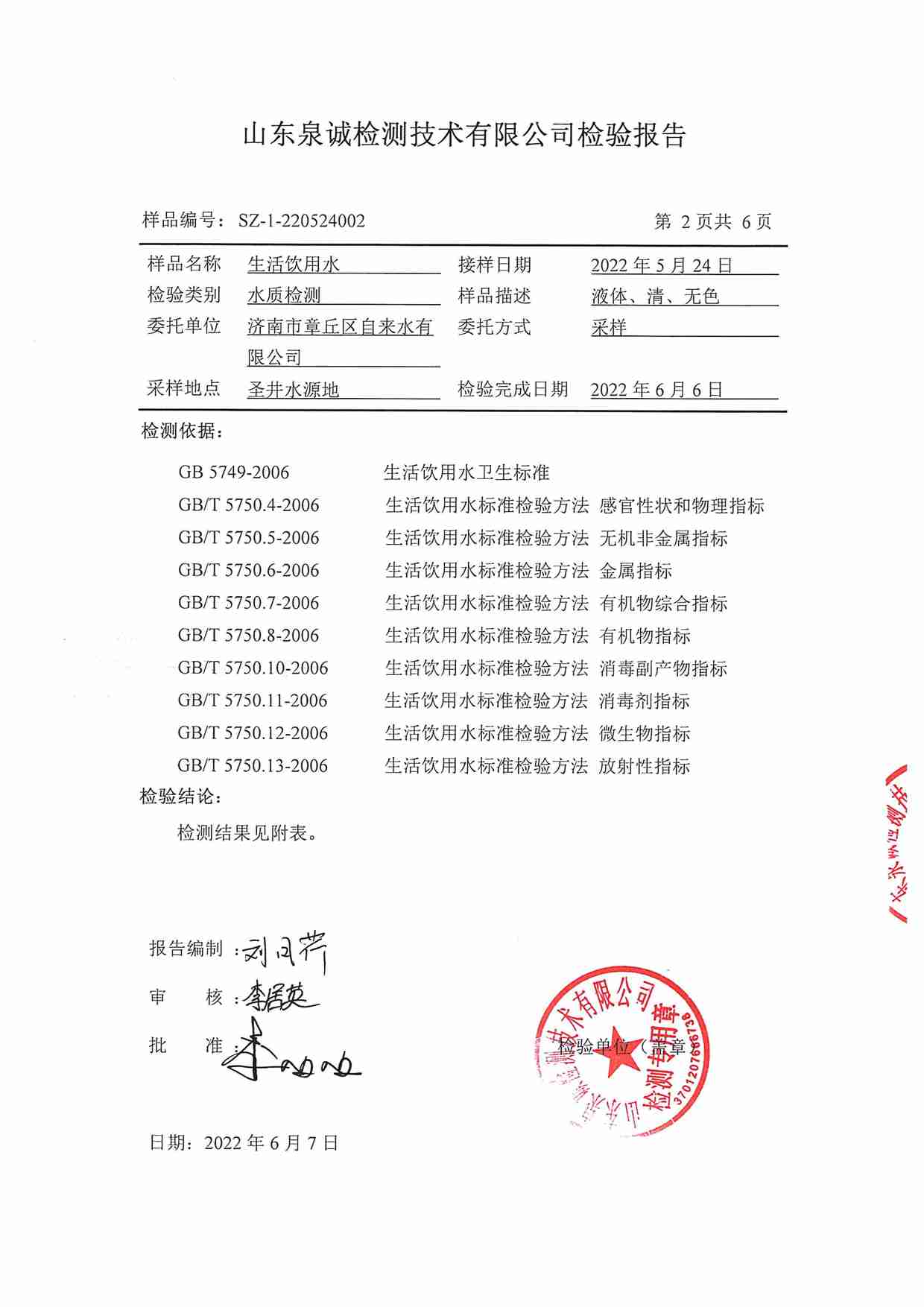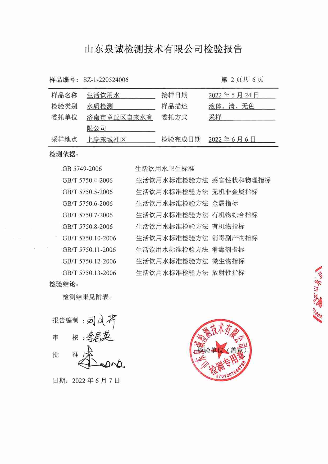 2022年5月水質(zhì)報告