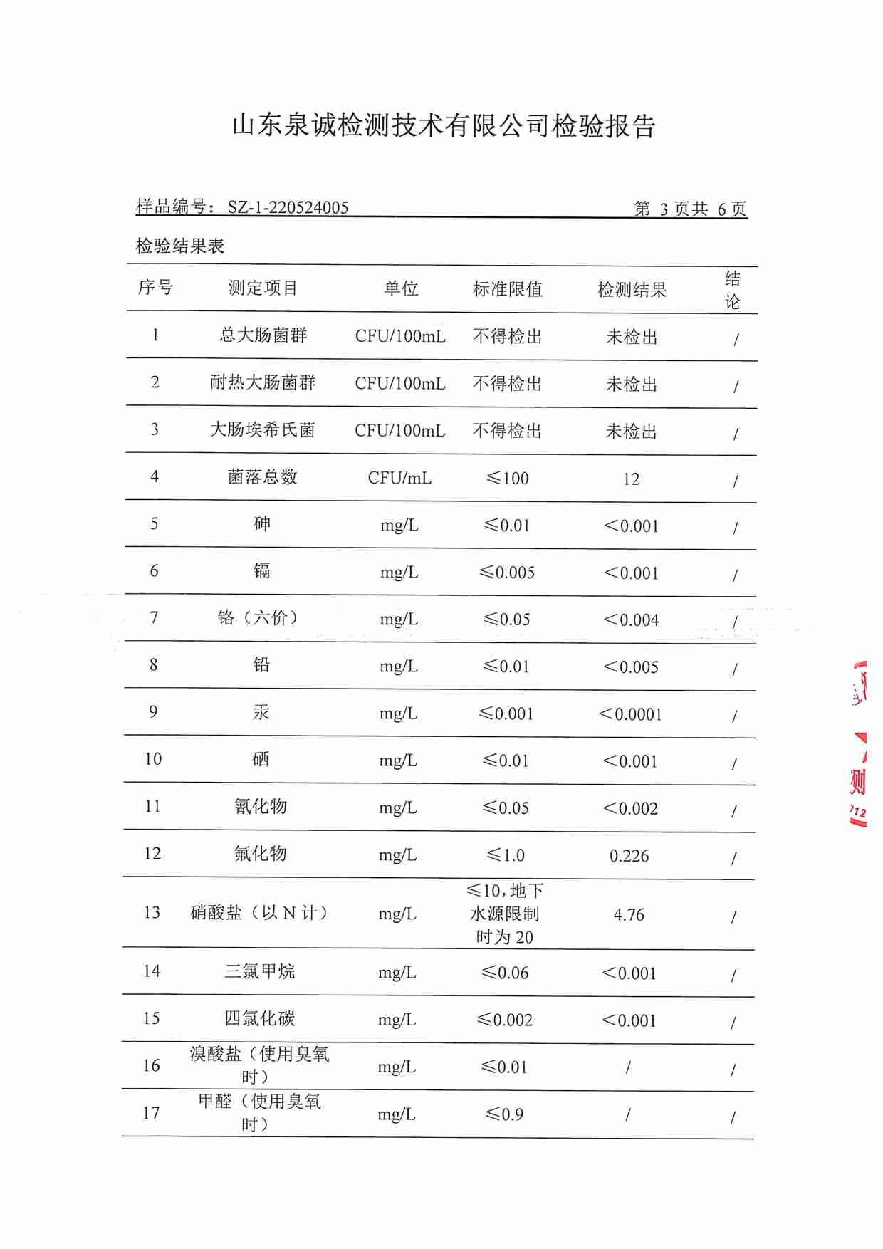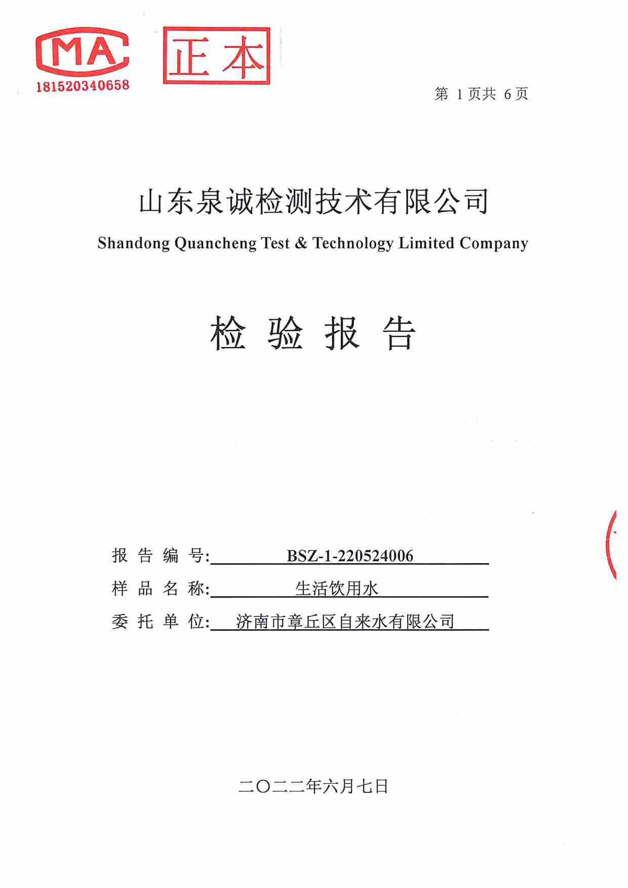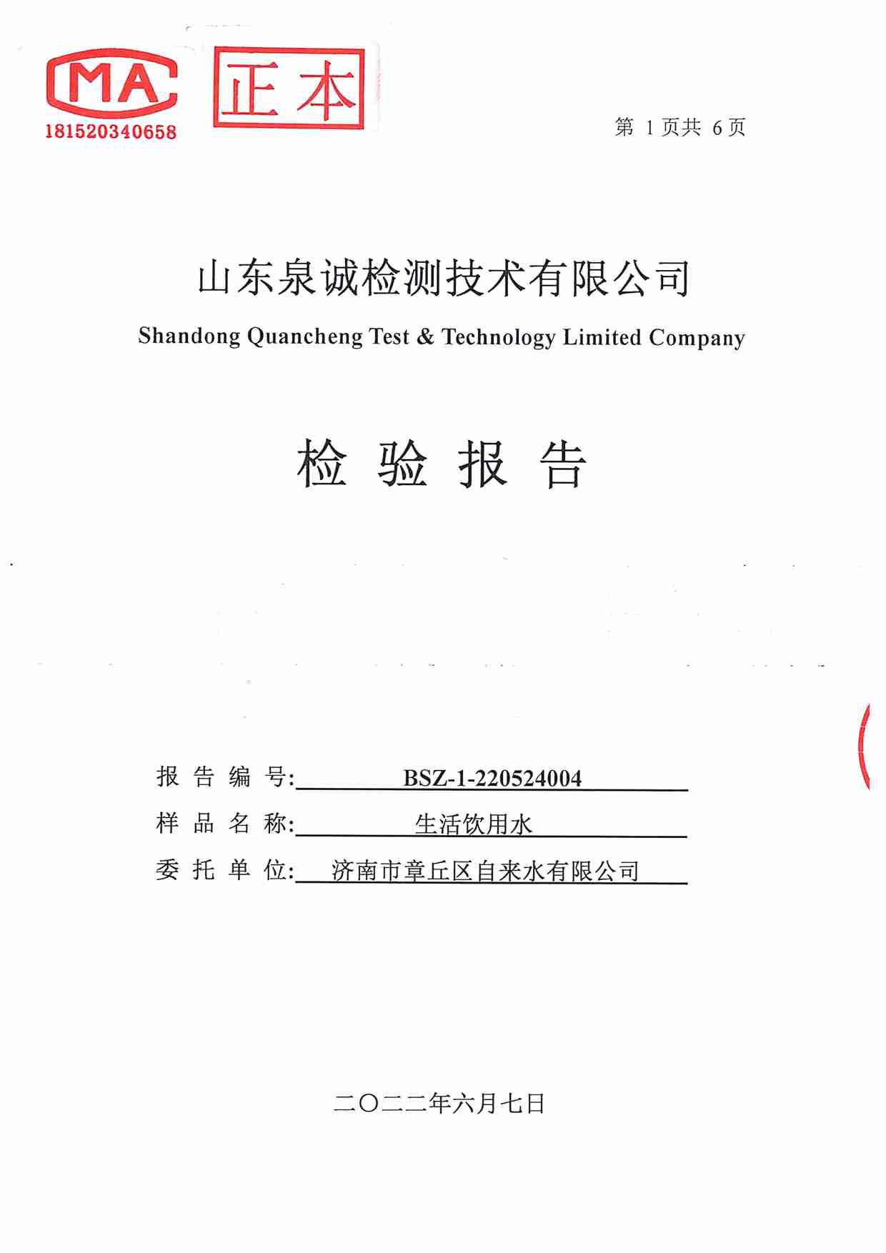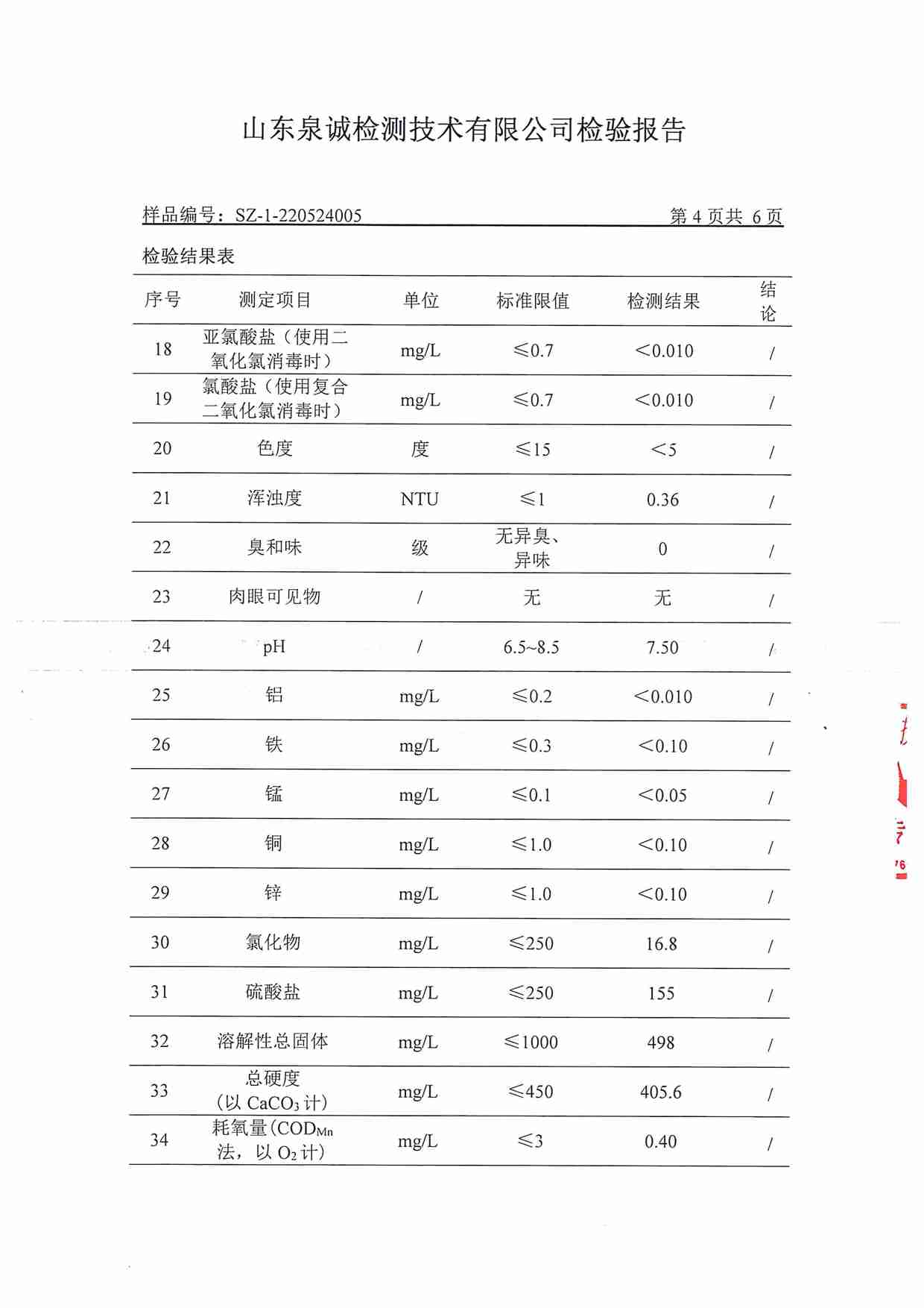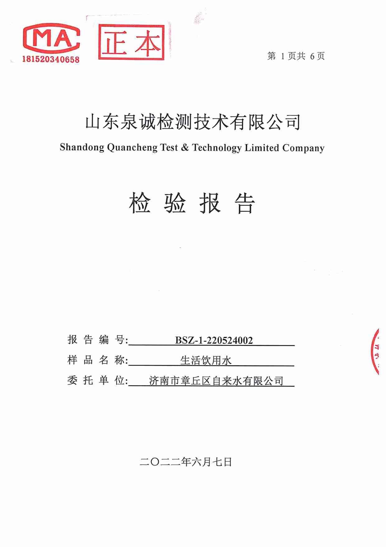 2022年5月水質(zhì)報告