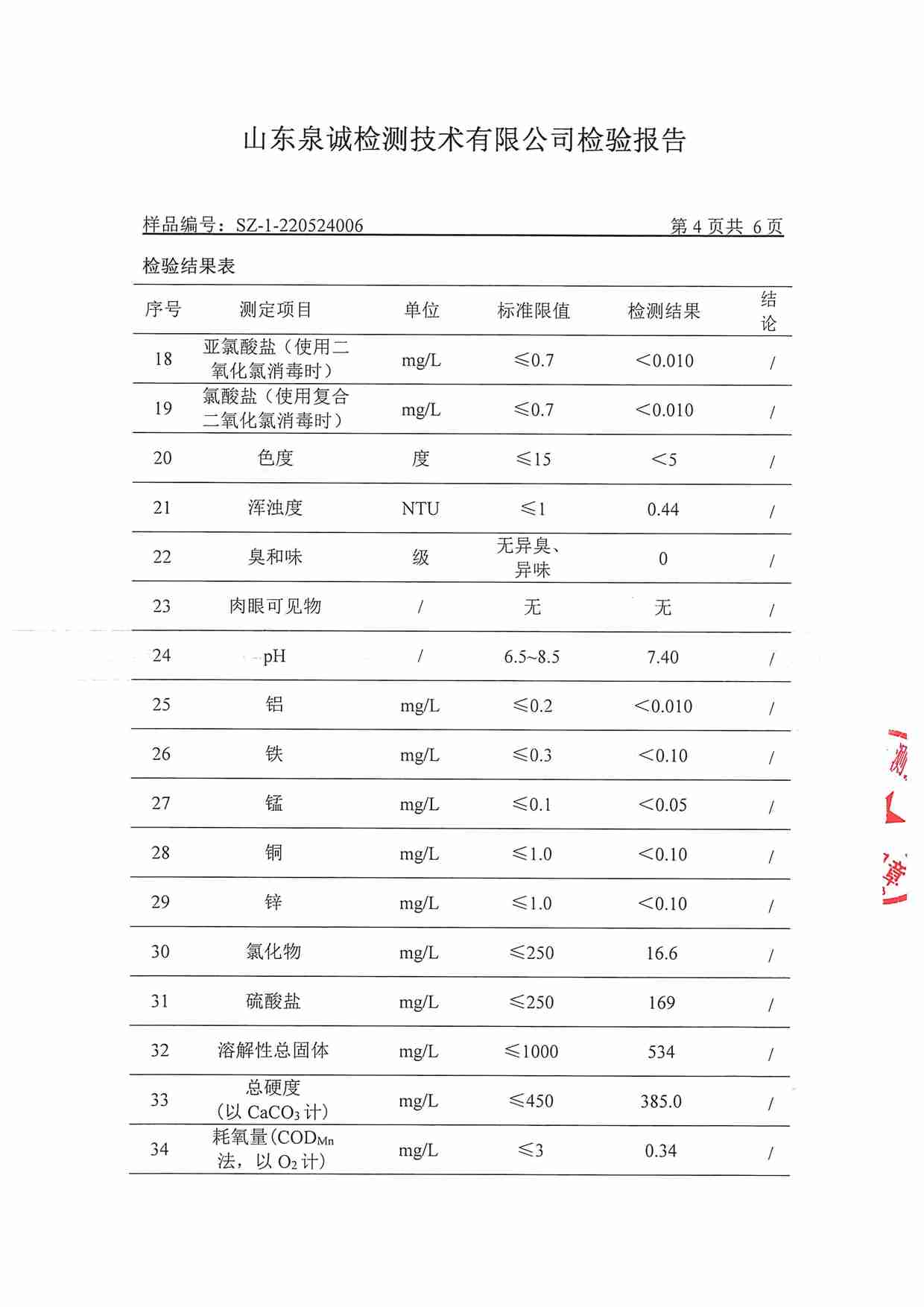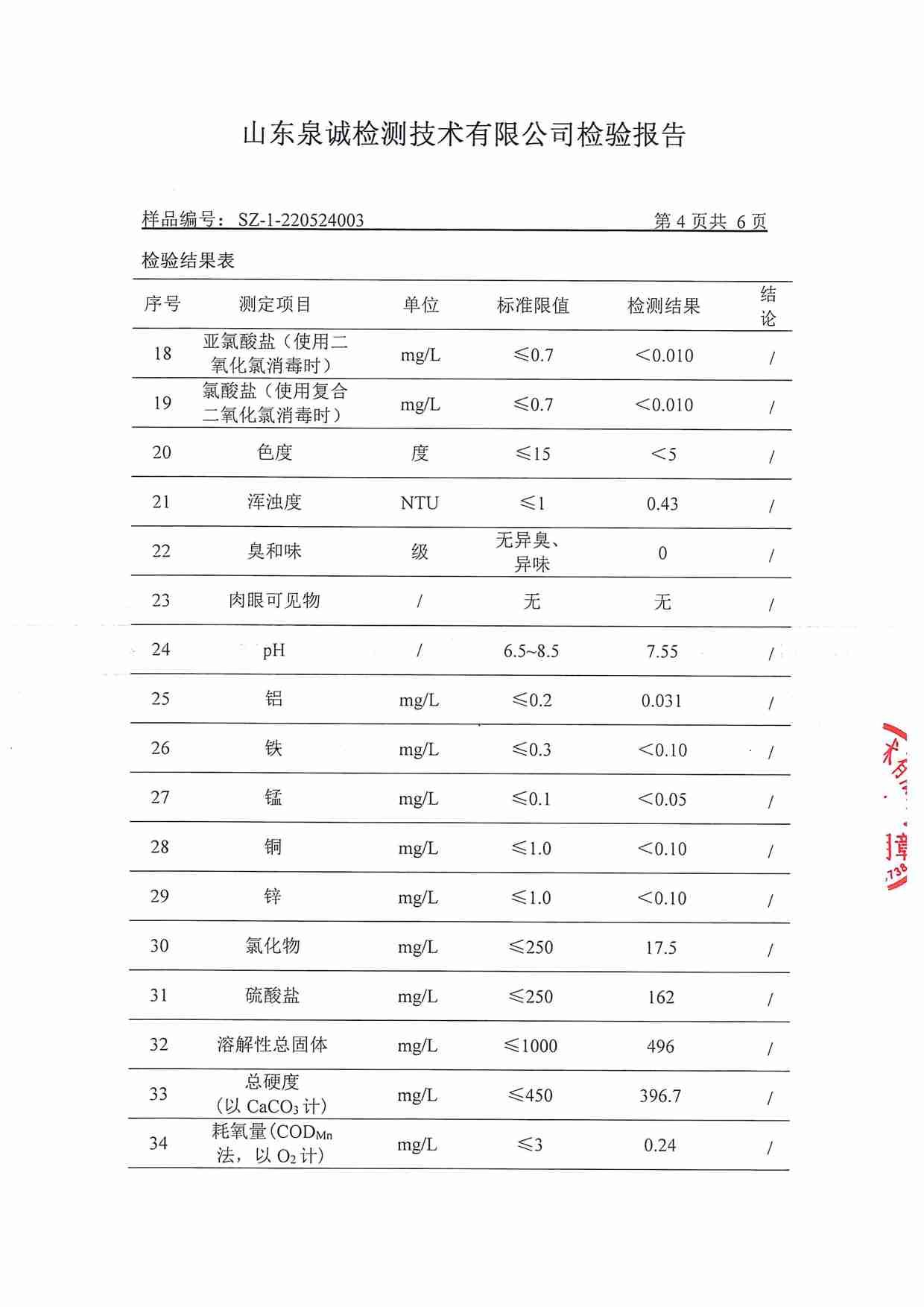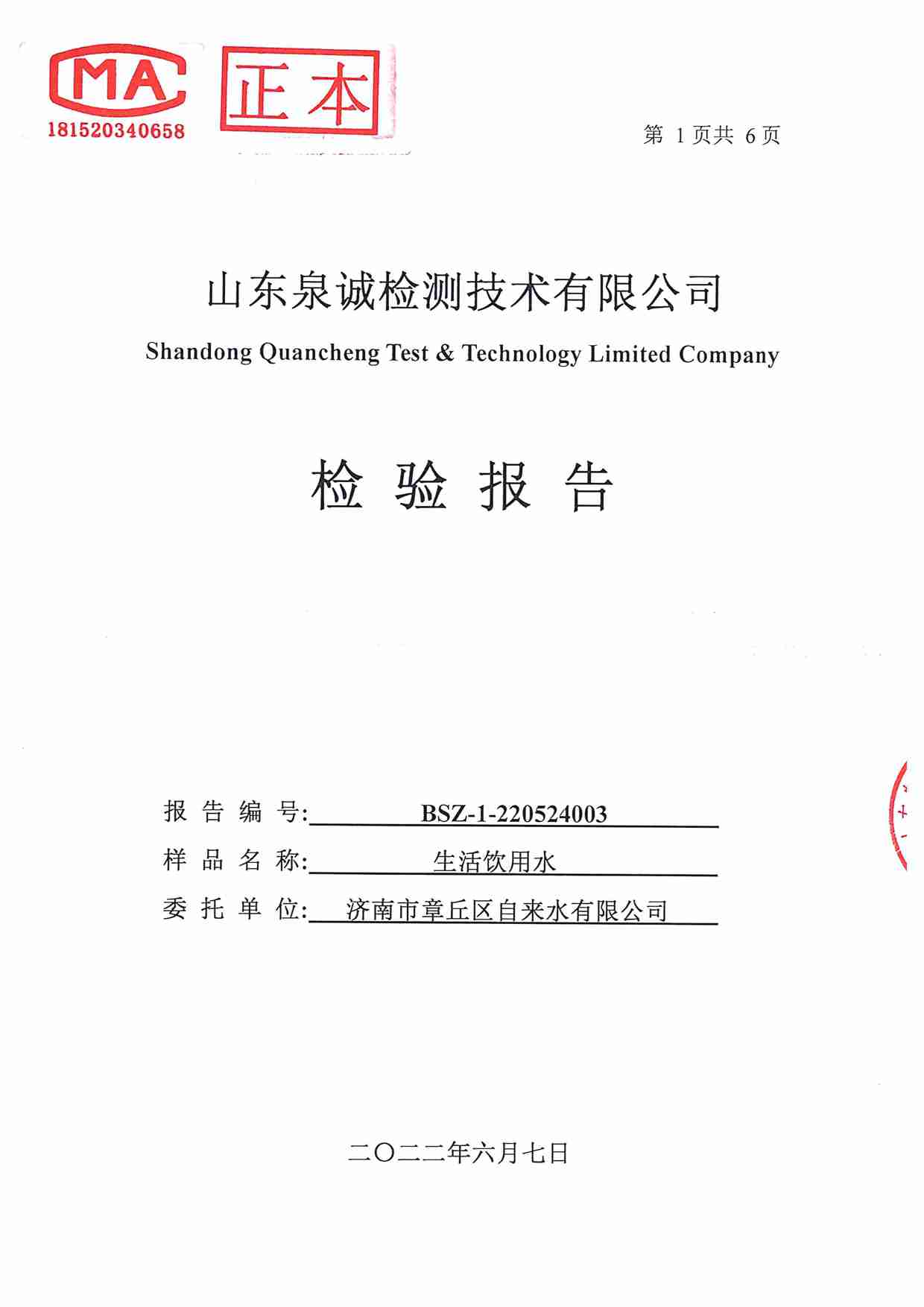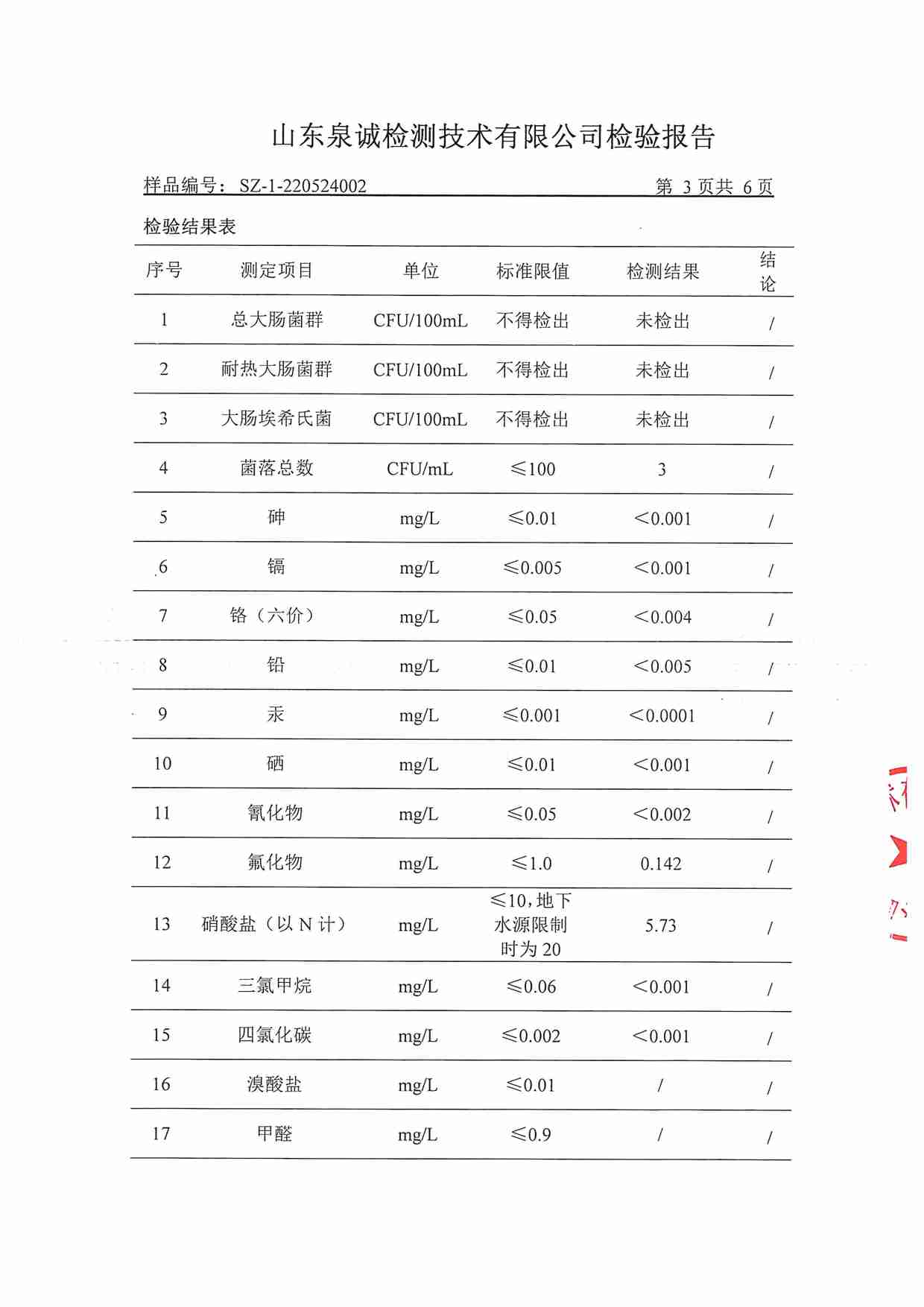 2022年5月水質(zhì)報告