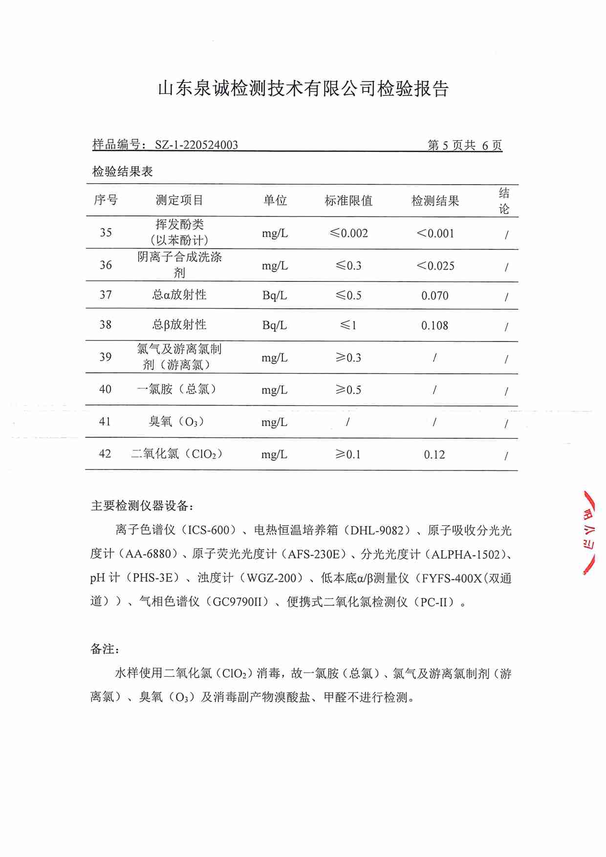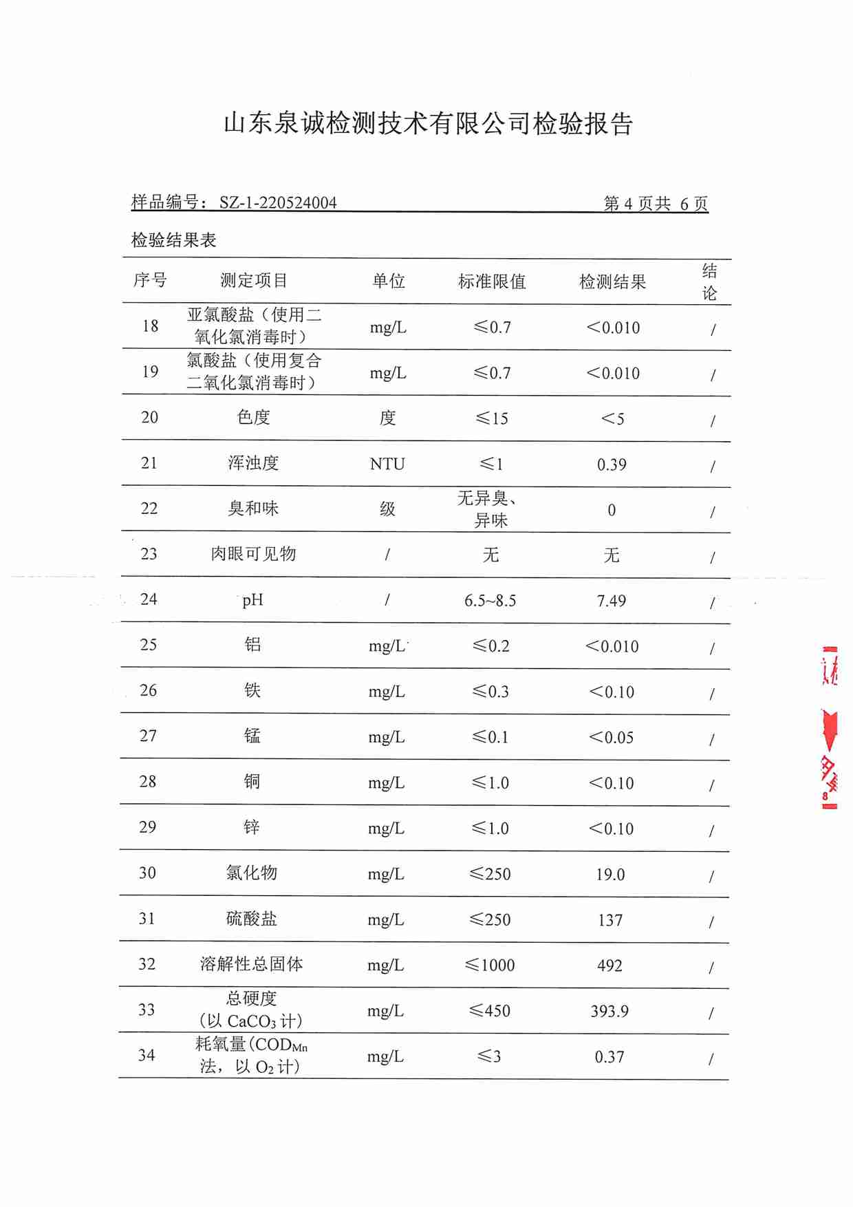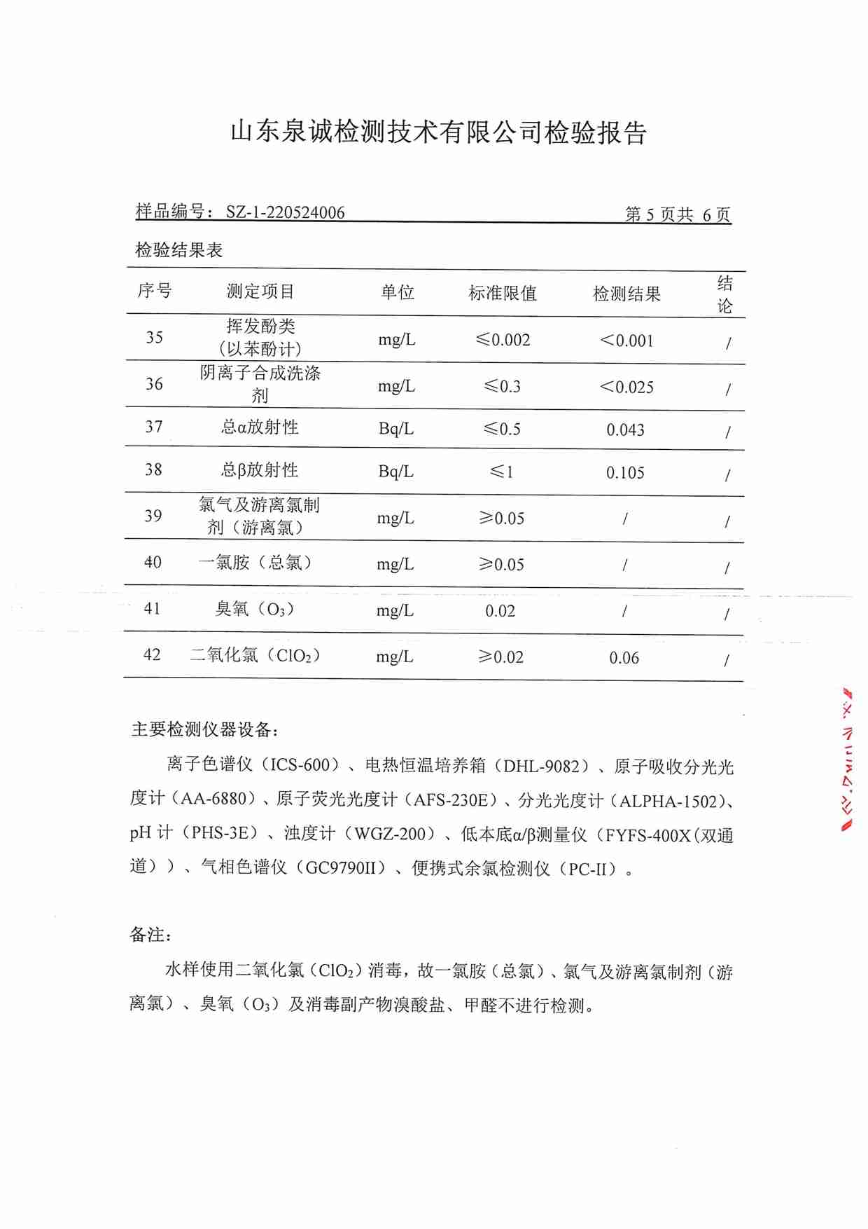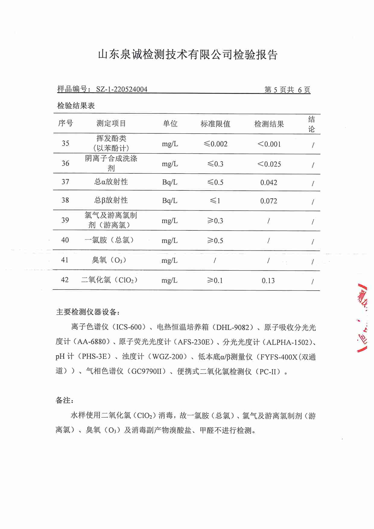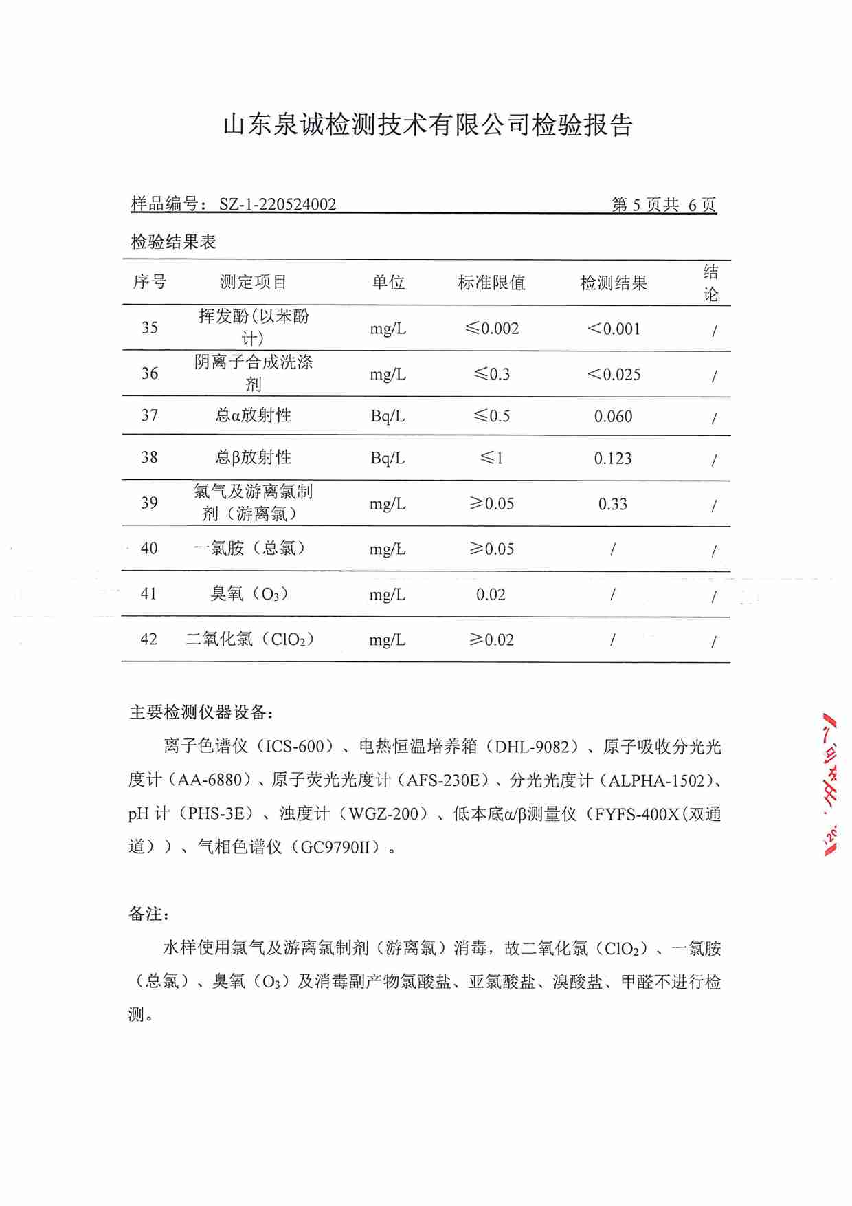 2022年5月水質(zhì)報告