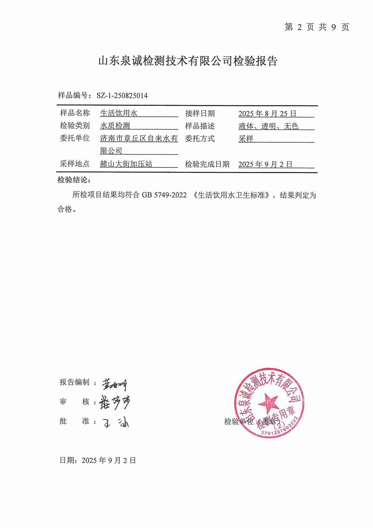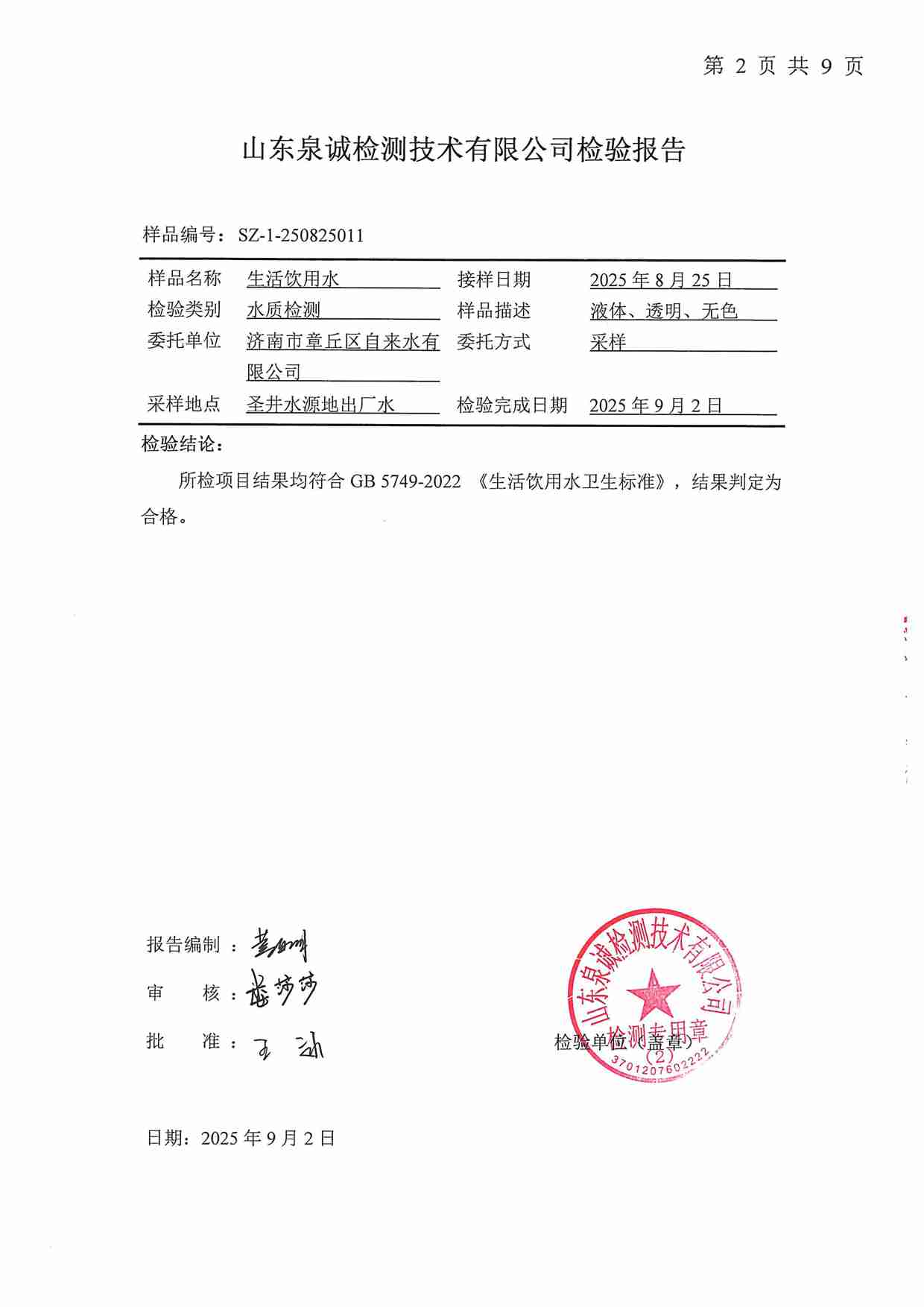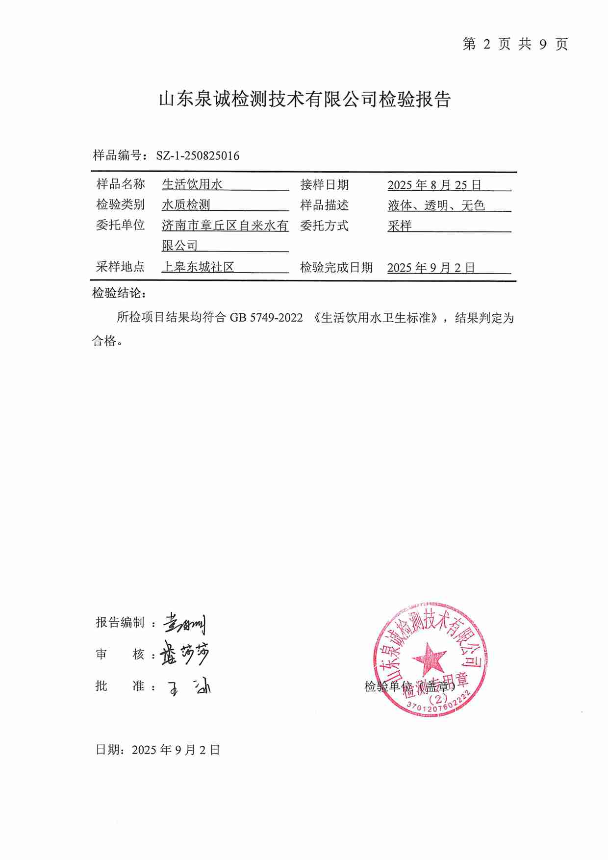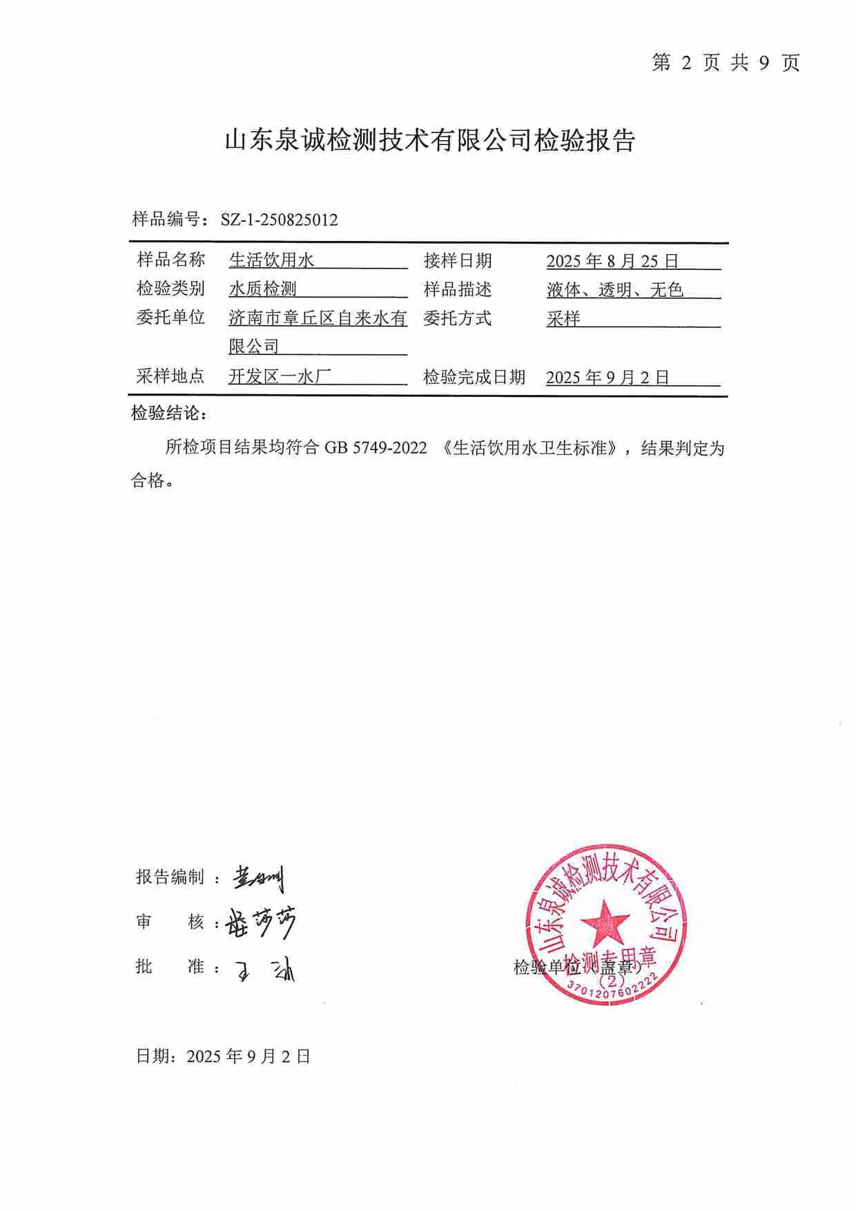 2025年09月水質(zhì)報告