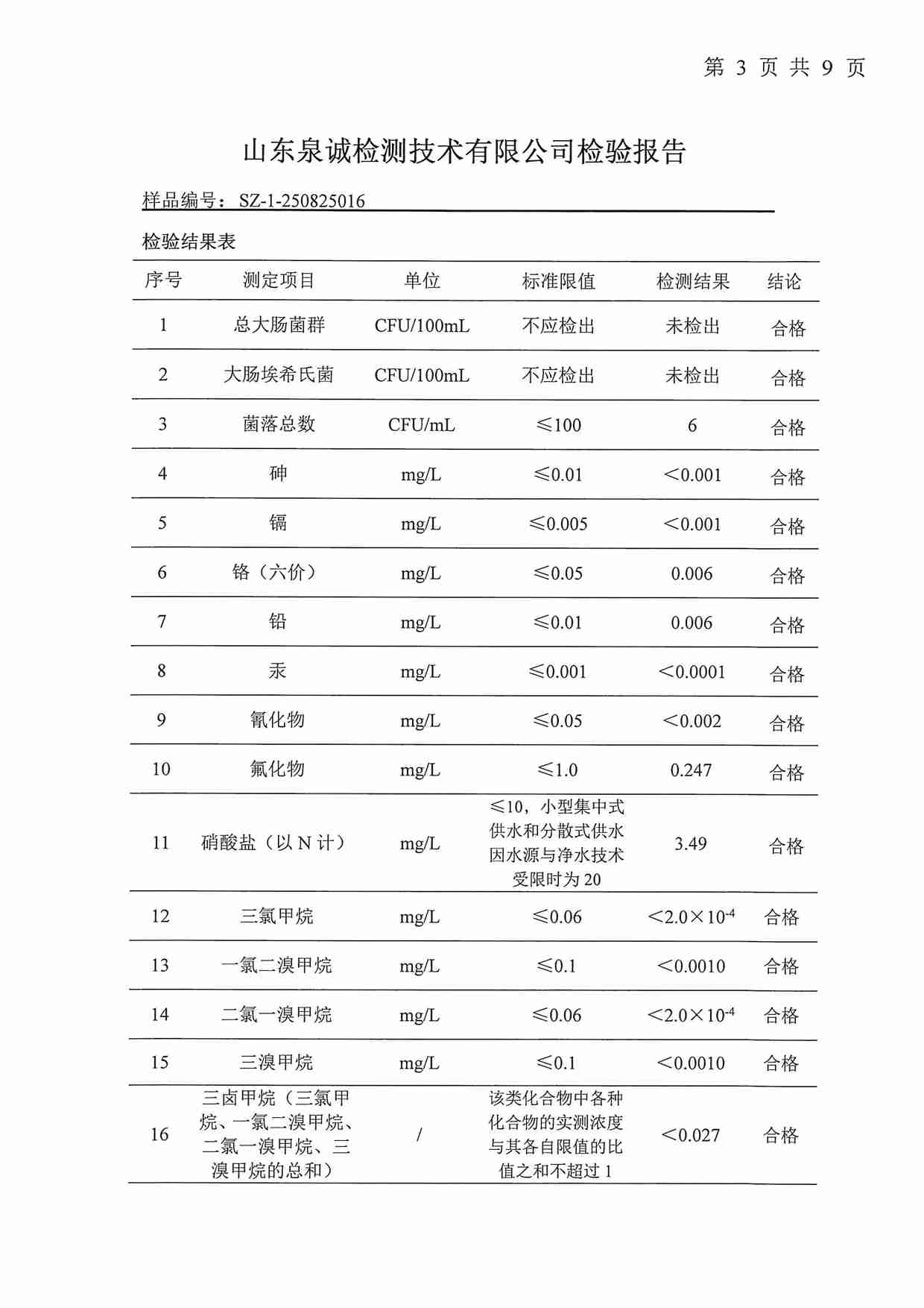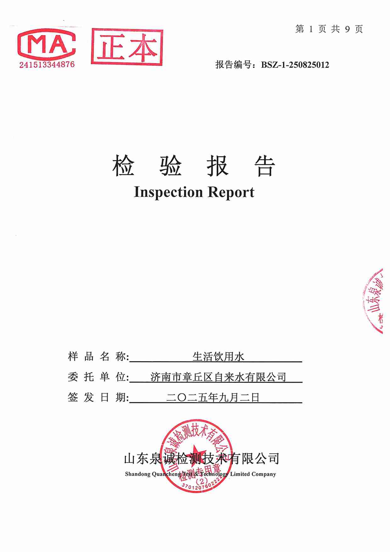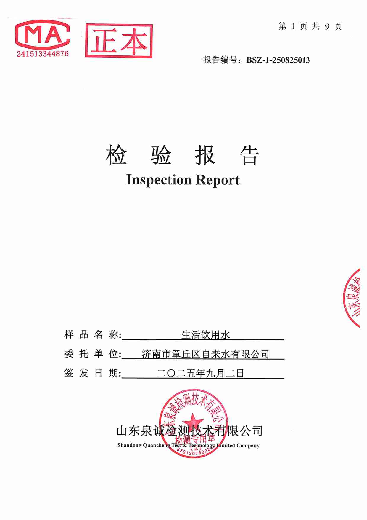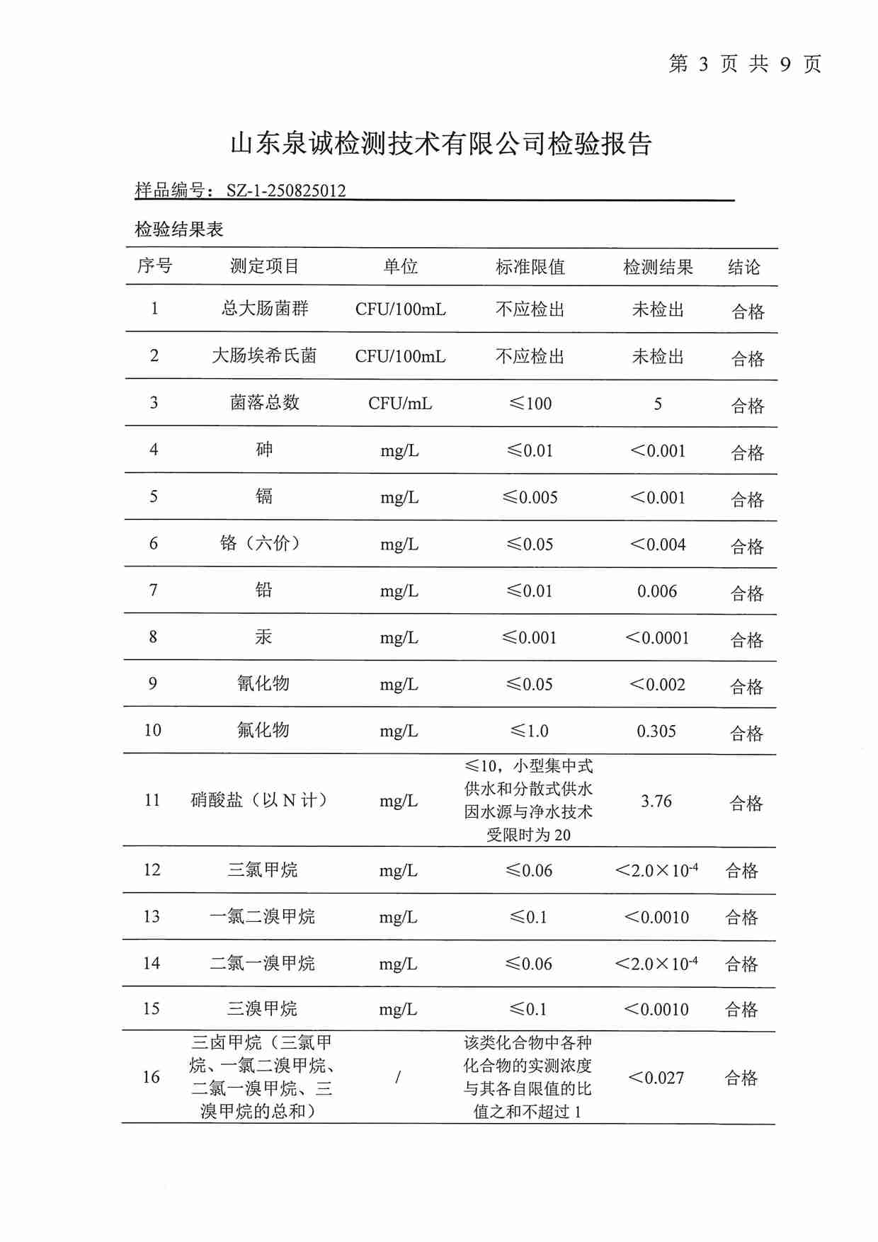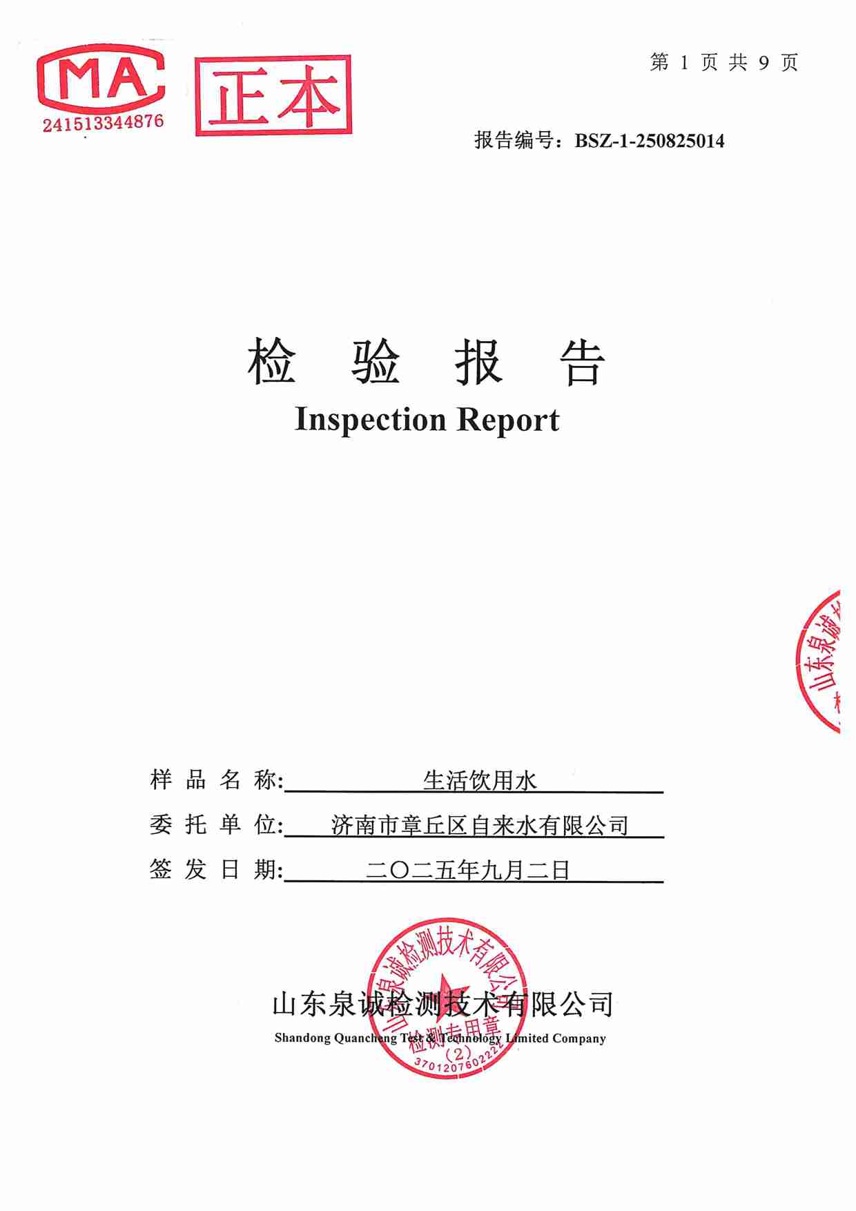 2025年09月水質(zhì)報告
