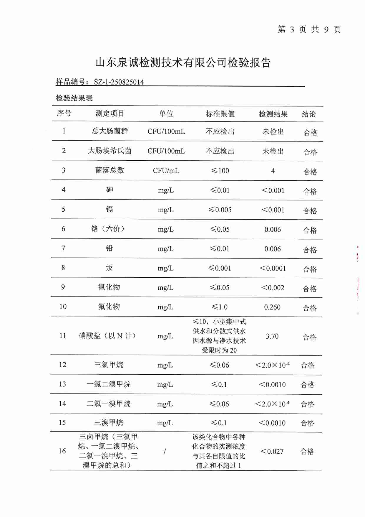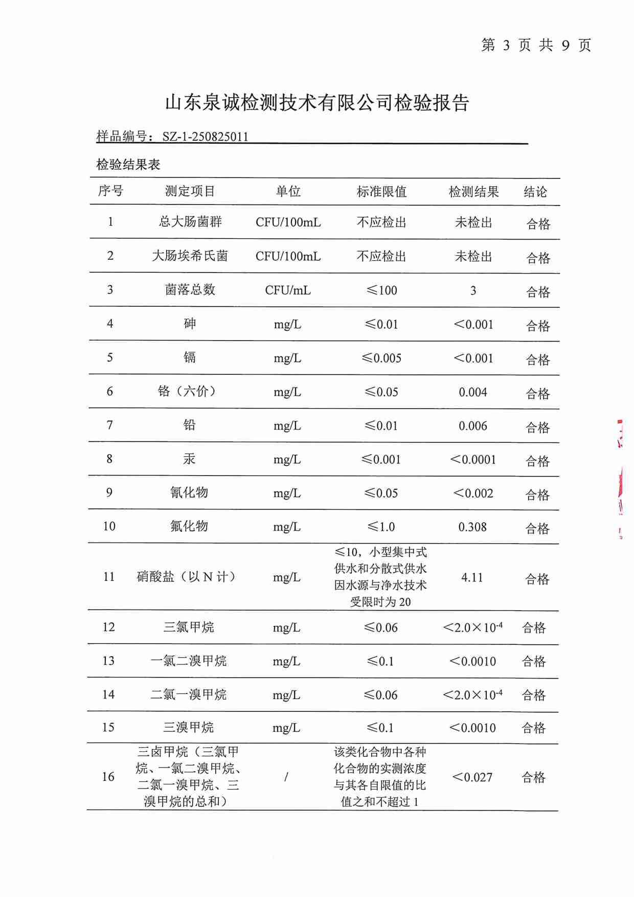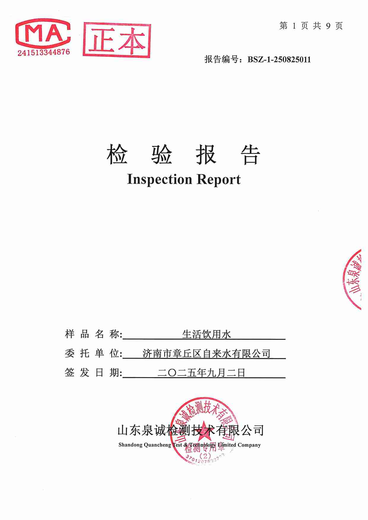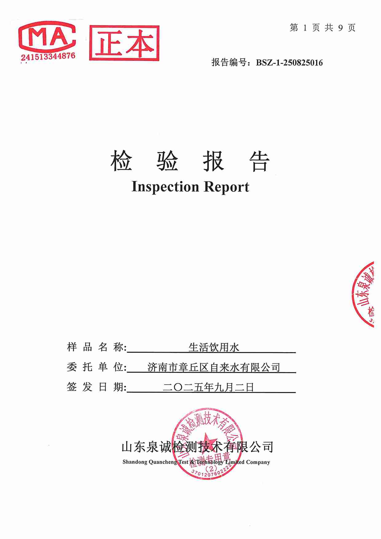 2025年09月水質(zhì)報告