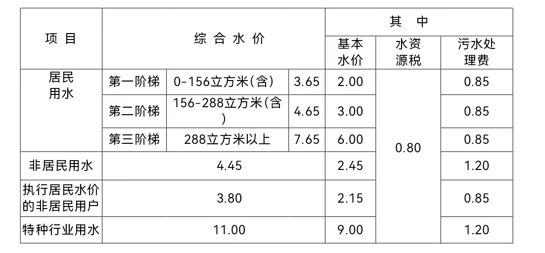 根據《關于印發城市居民生活用水價格及階梯方案的通知》(章價發【2017】27號)及《關于調整城市公共供水基本水價的通知》(章價發【2019】1號)文件規定,對于本行政區域內城市管網公共供水、且由專業供水企業抄表收費到戶的“一戶一表”的居民用戶生活用水實施用水階梯價格機制,按年度用水量計算,將居民家庭全年用水量劃分為三檔,水價逐檔遞增,按檔計收。目前我區城市公共供水范圍內居民生活用水收費標準見下表: